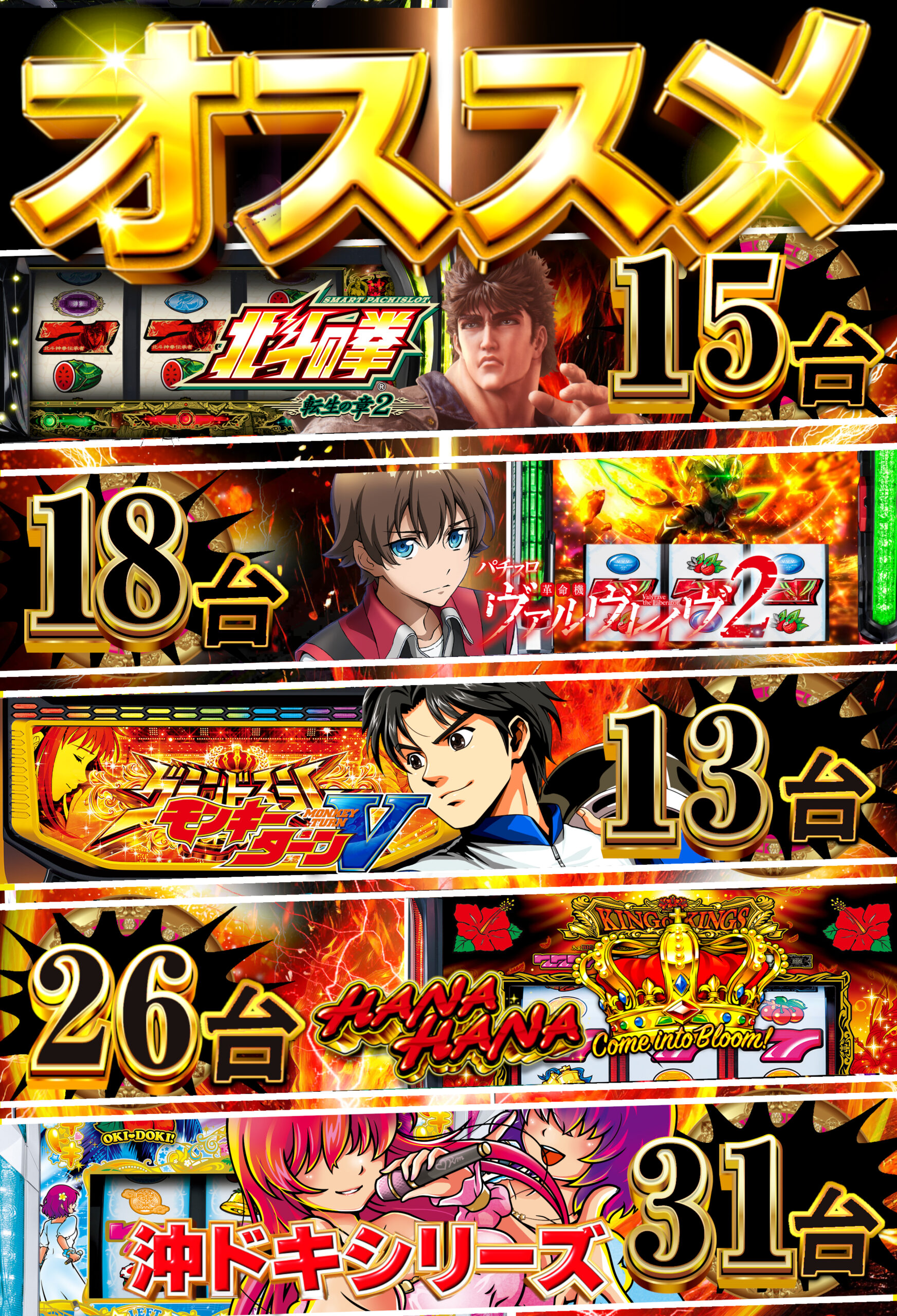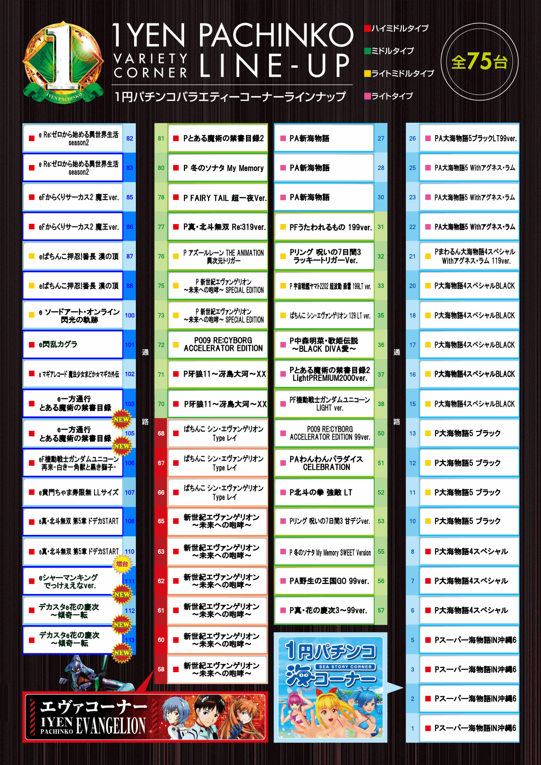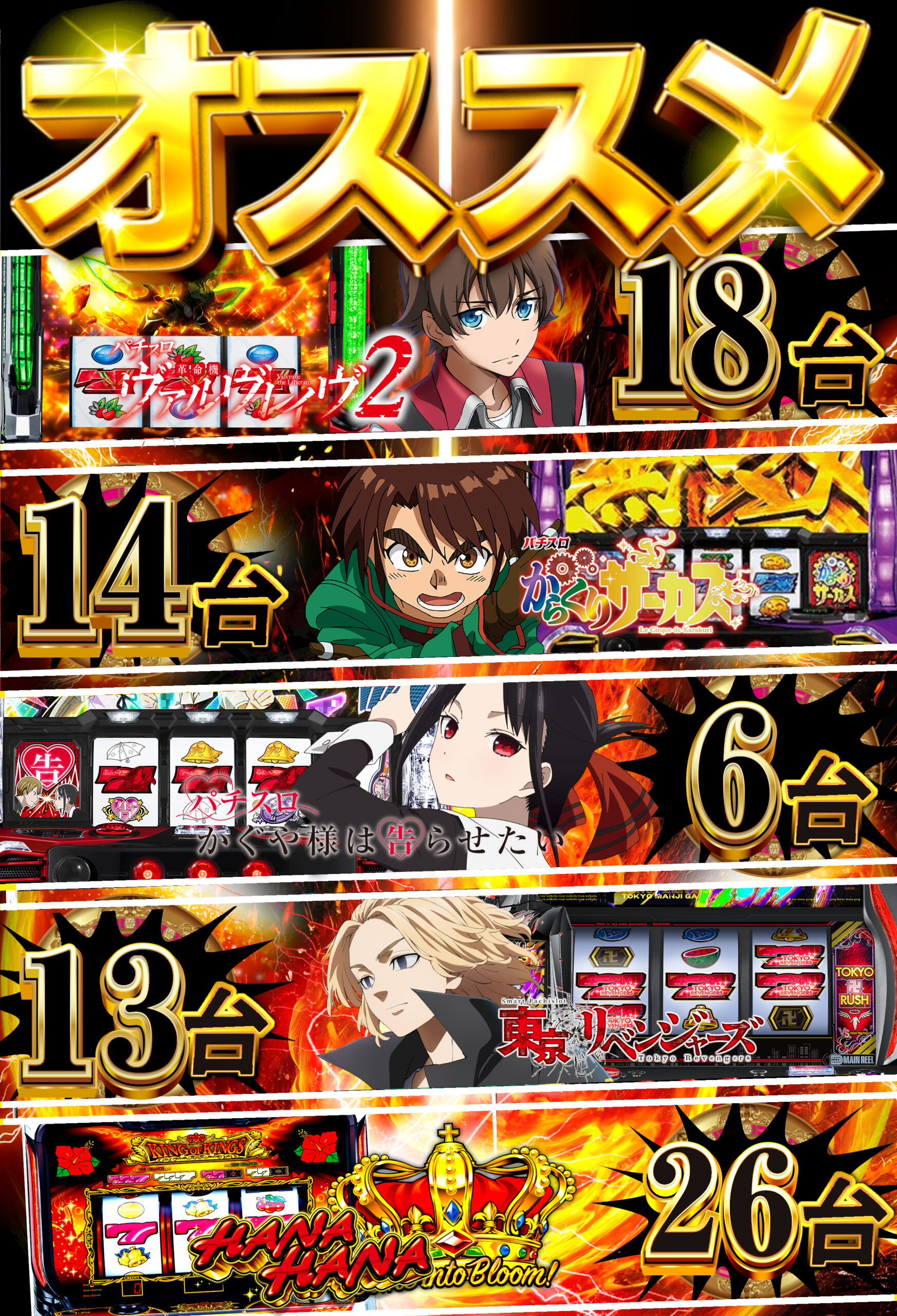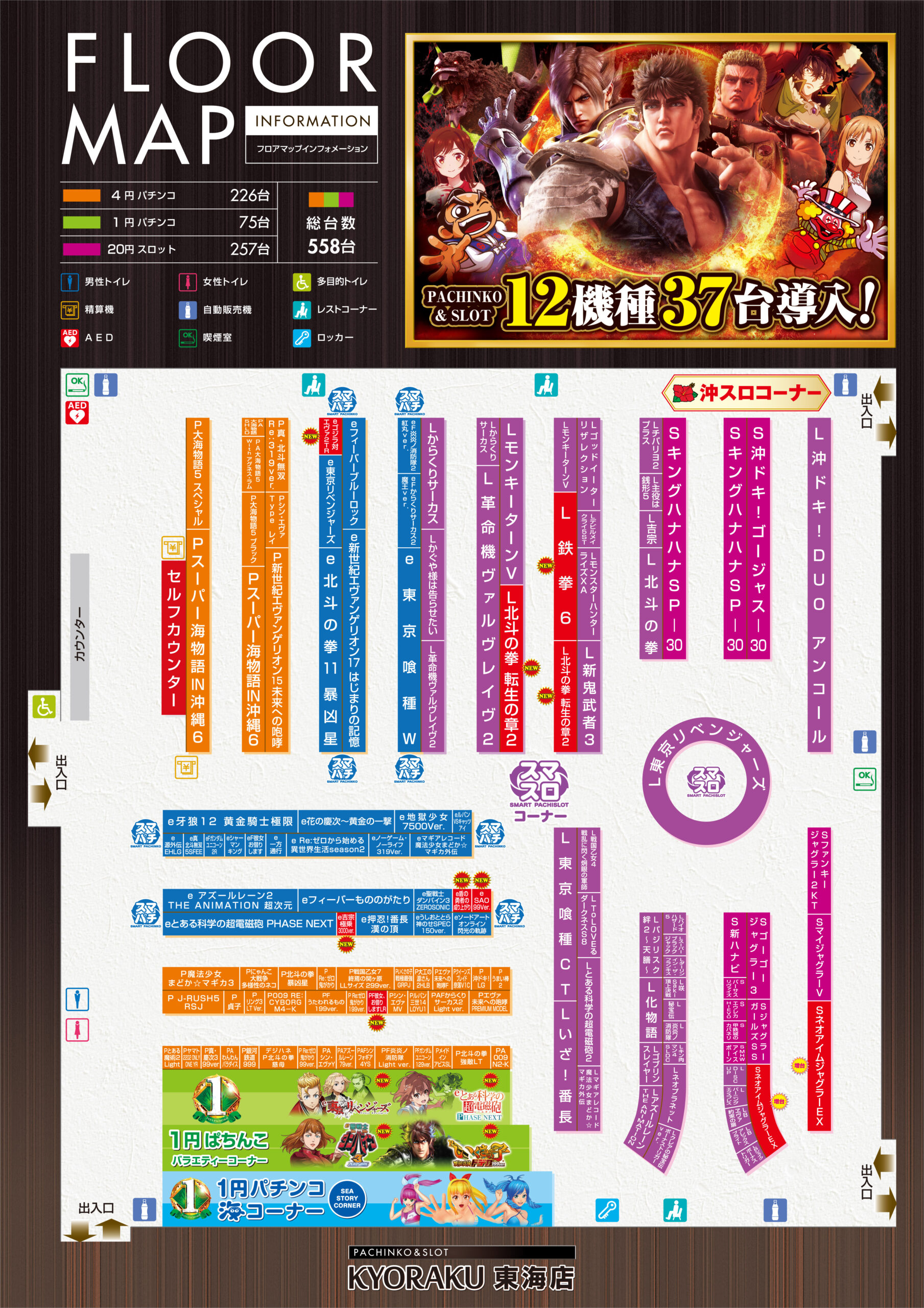 | 台数 | パチンコ:301台 スロット:257台 合計:558台 |
