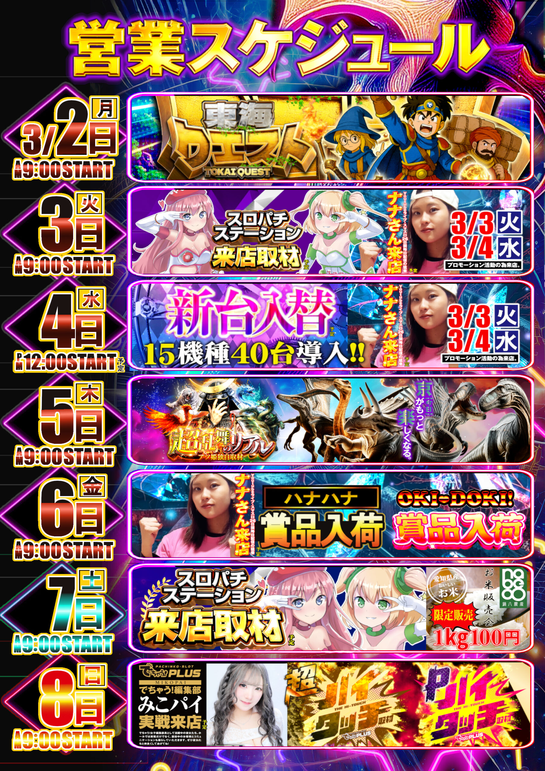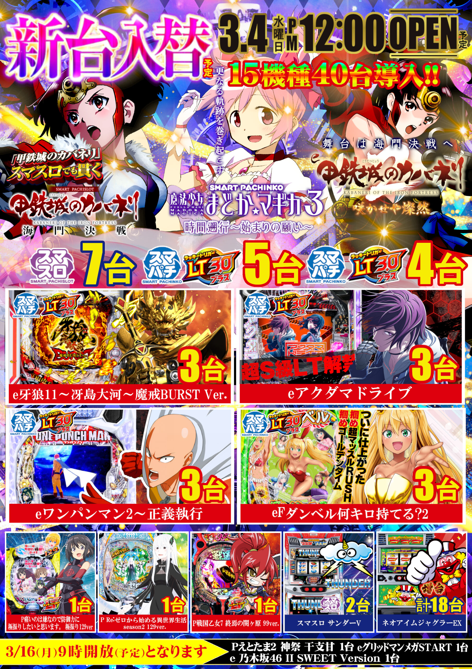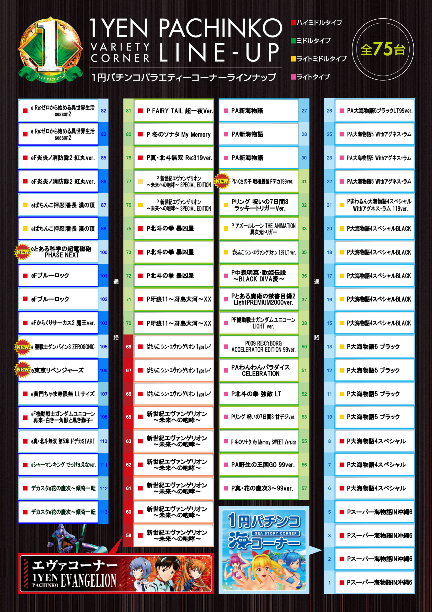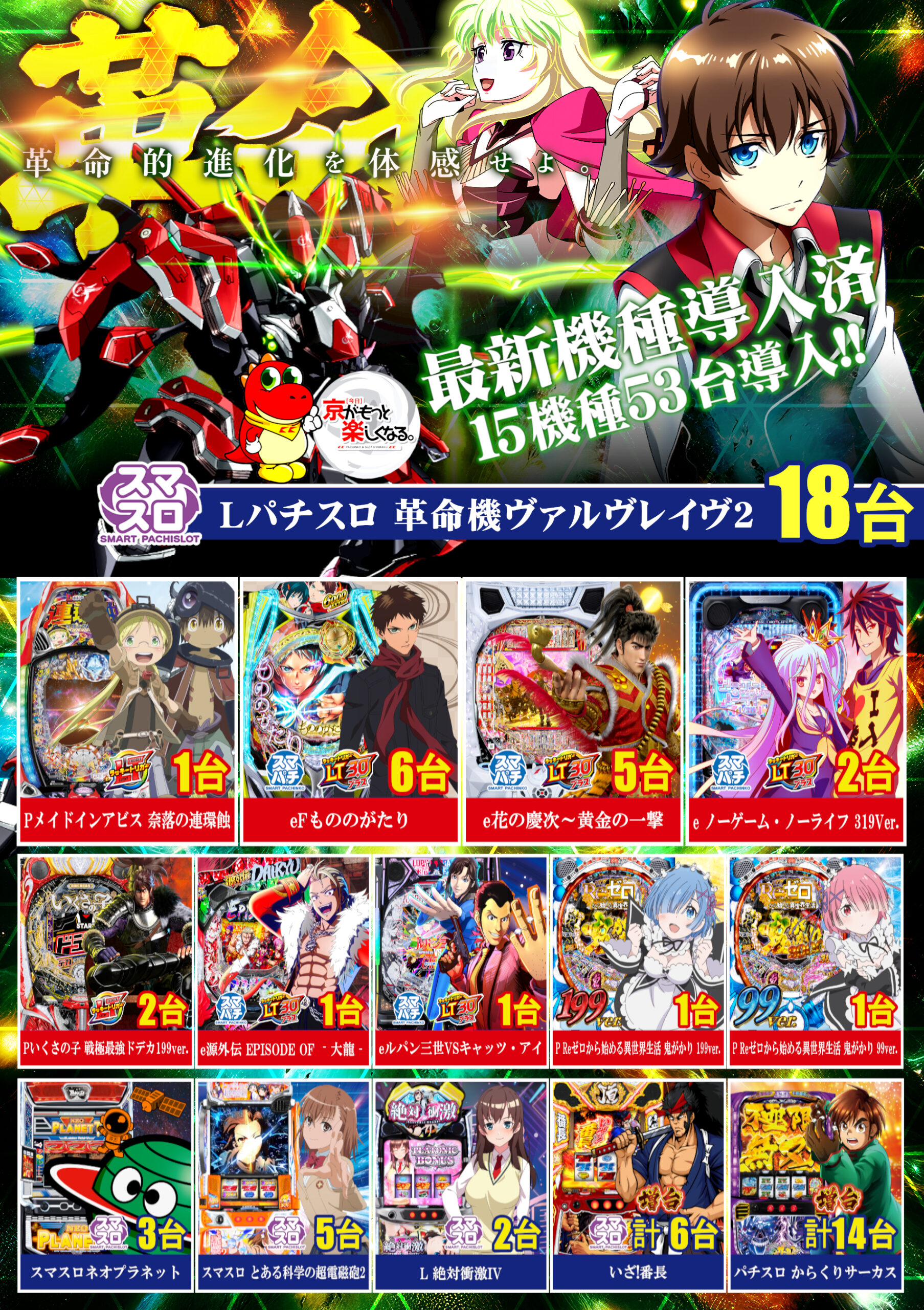 | 台数 | パチンコ:301台 スロット:257台 合計:558台 |