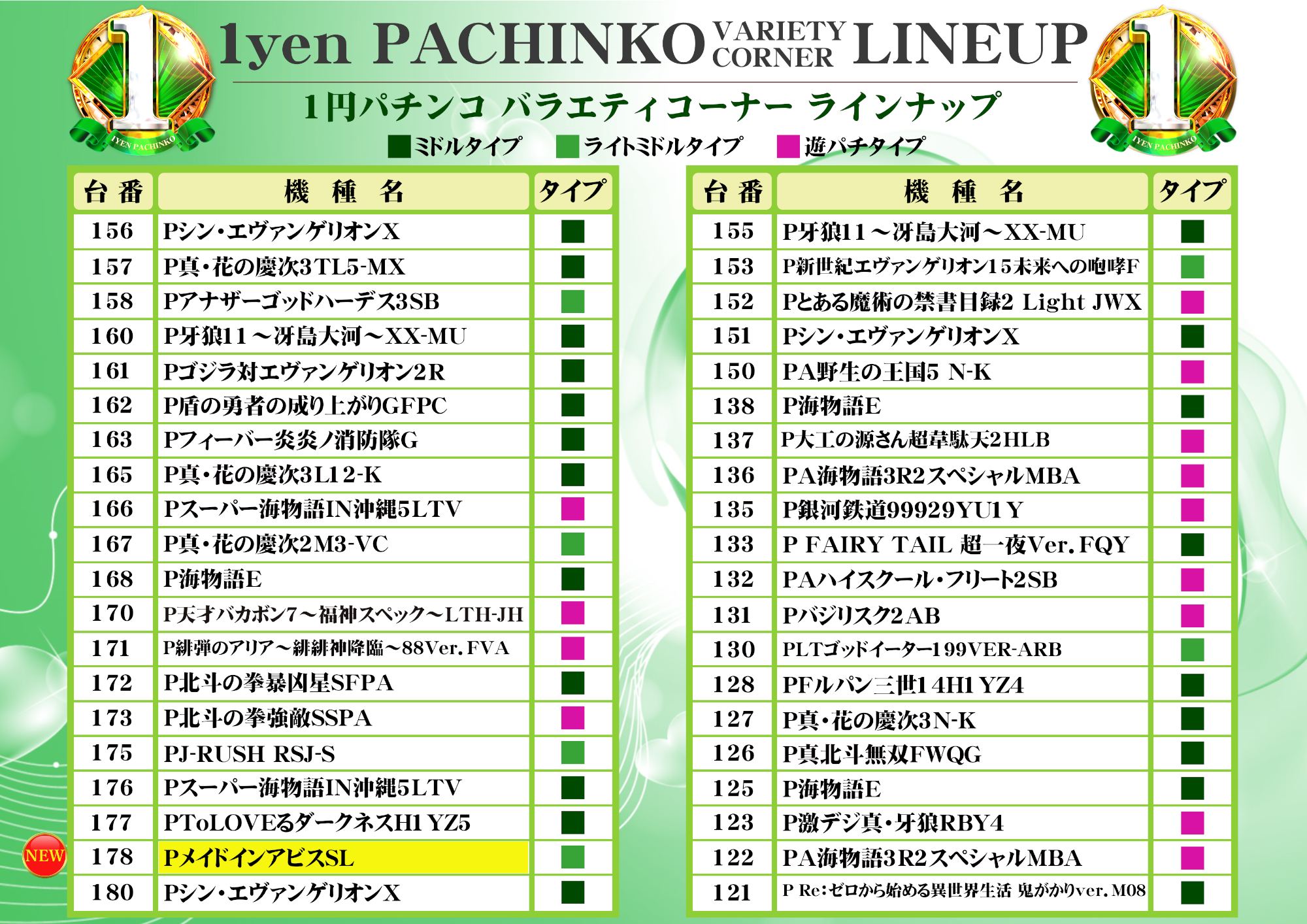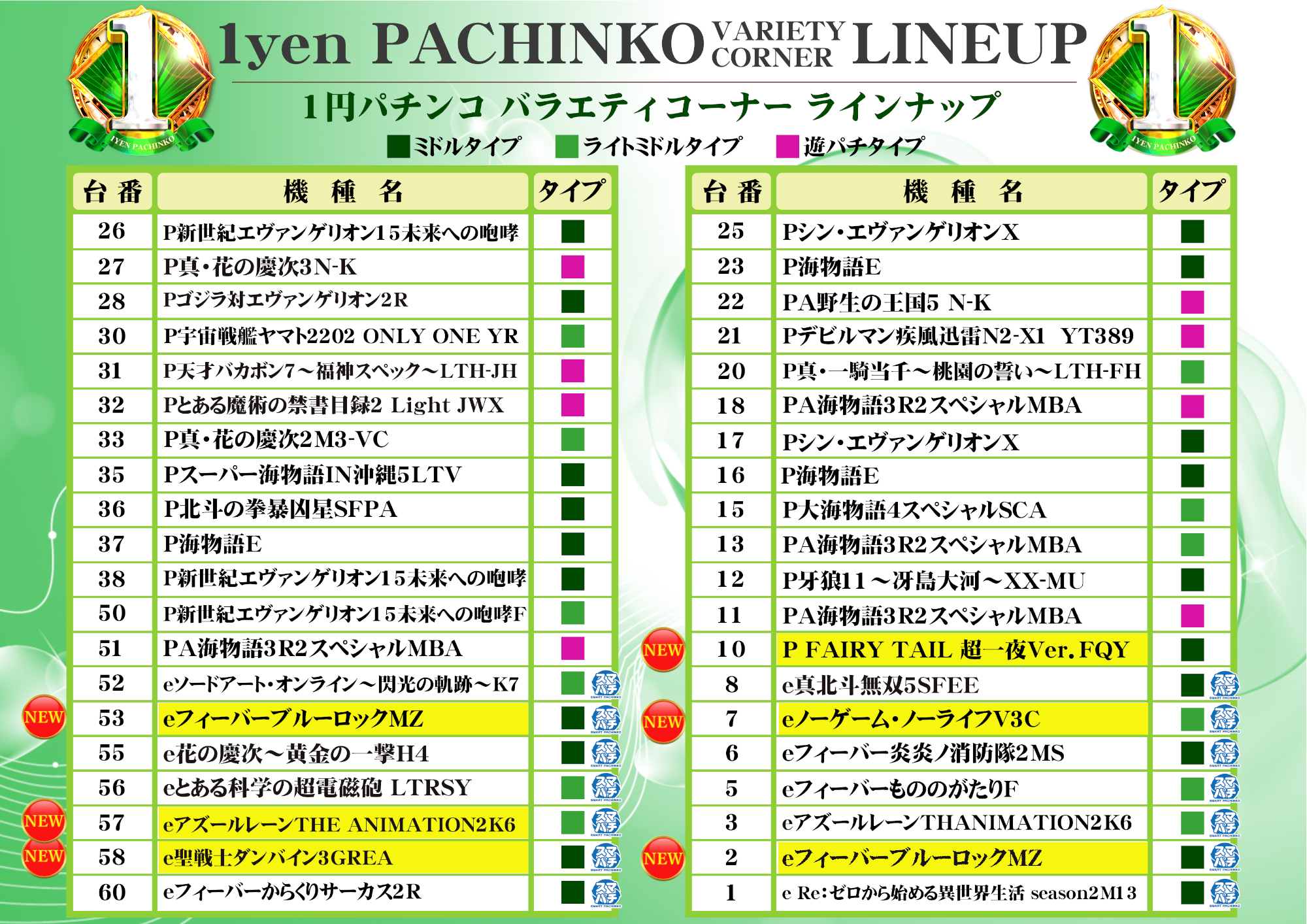 | 貸玉 | 4パチ 1パチ 20スロ |