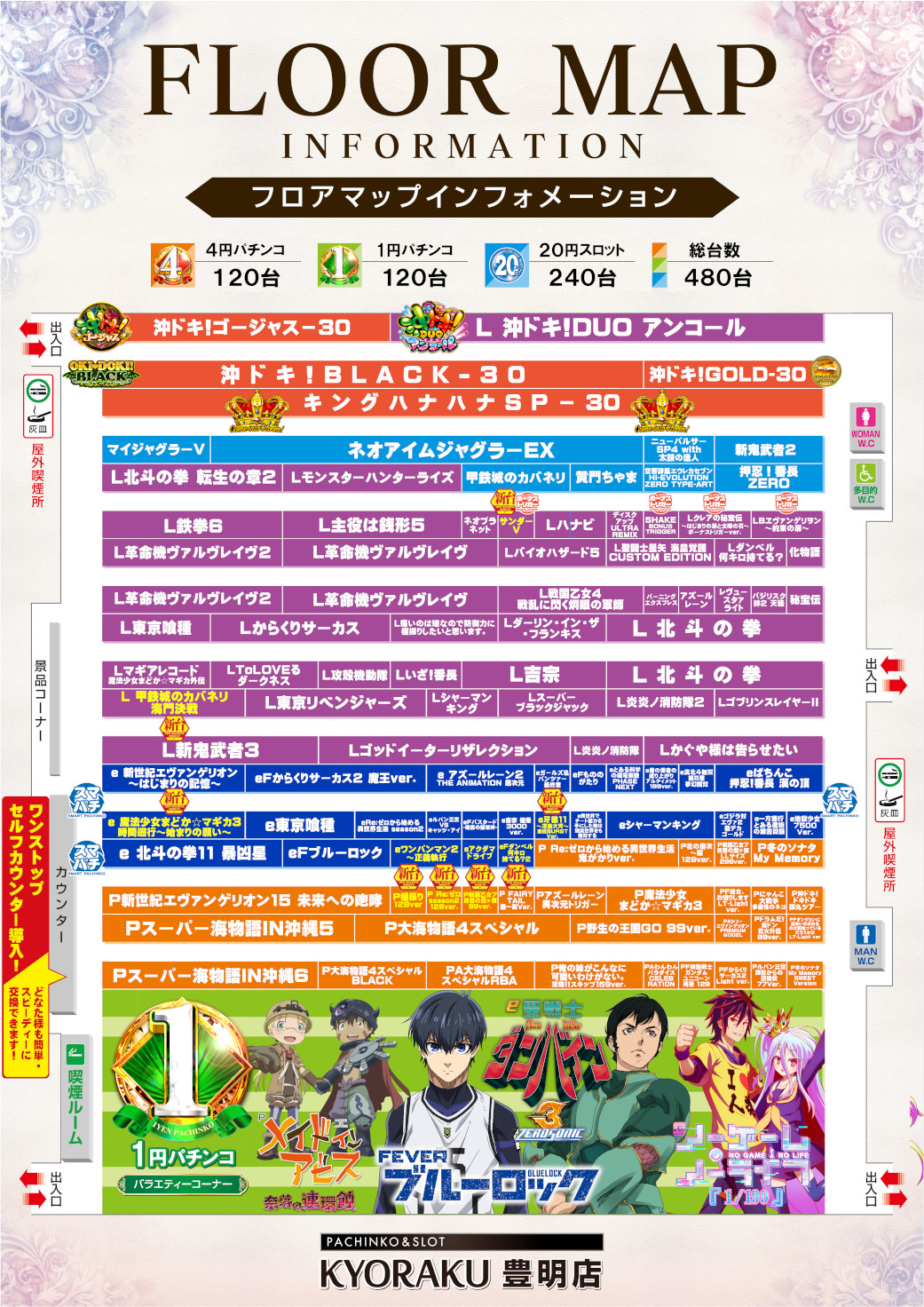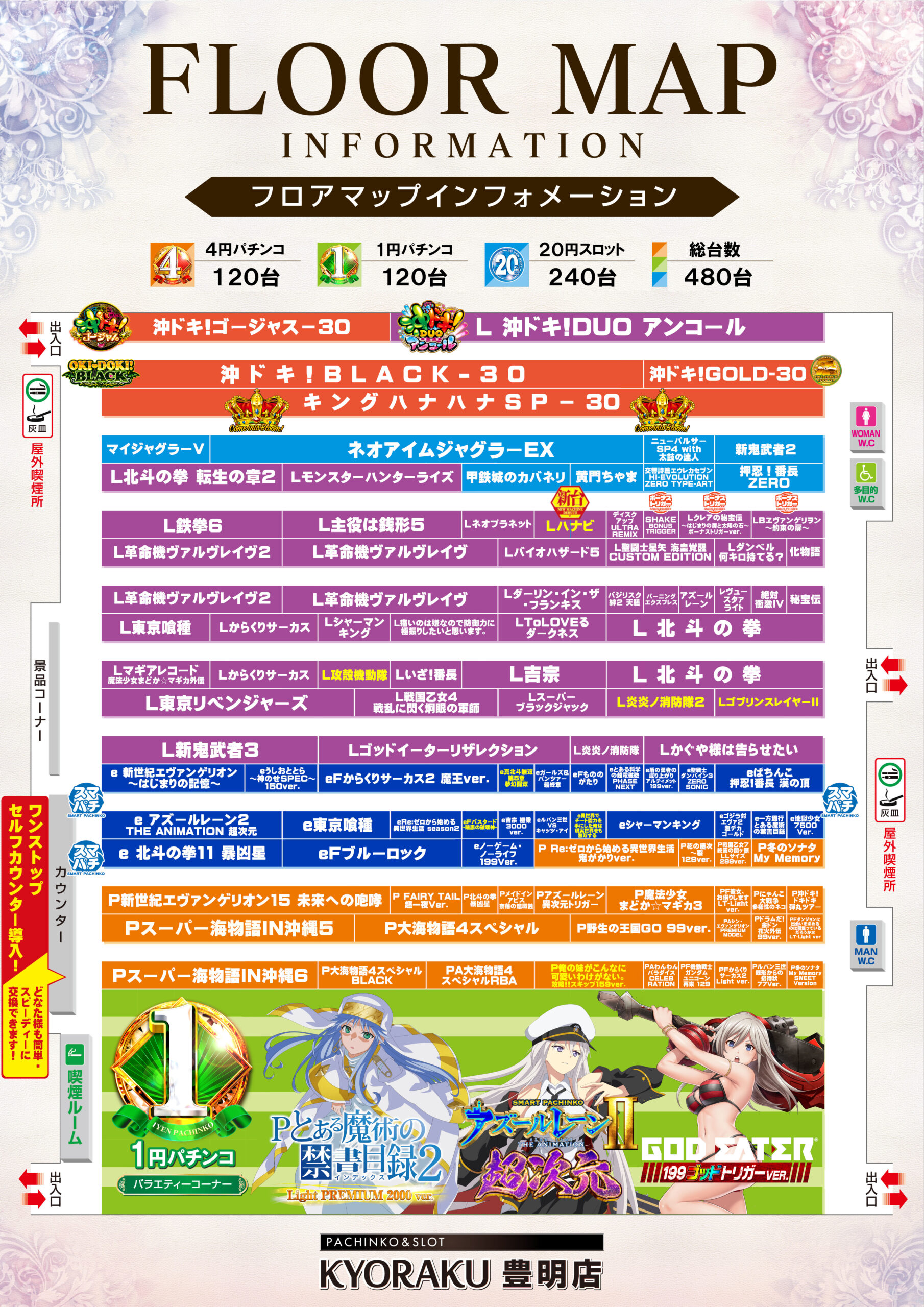 | 台数 | 480台(パチンコ:240台/スロット:240台) |